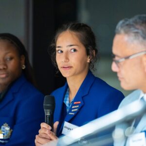 Student Allegra described the moment a Holocaust survivor’s testimony shifted something in how she understood her own responsibility. Her classmate Iremide spoke with striking clarity about what stops young people from speaking up when they witness injustice, and what it takes to change that.