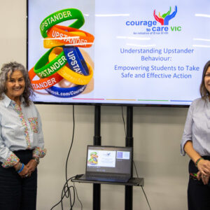 Recently, Courage to Care volunteers and staff delivered our Upstander Educational Workshop to the students, teachers and parents/carers of Ballarat Christian College. This was the first time we have delivered a parents/carers session. The session was delivered by our Education Manager Karen Maclean and was extremely well received by the parents/carers who attended. Students in Years 5-1o also experienced the program and no doubt were able to discuss their experience with their parents/carers. Congratulations to Ballarat Christian College for being so proactive and offering our wonderful program to their whole school community.