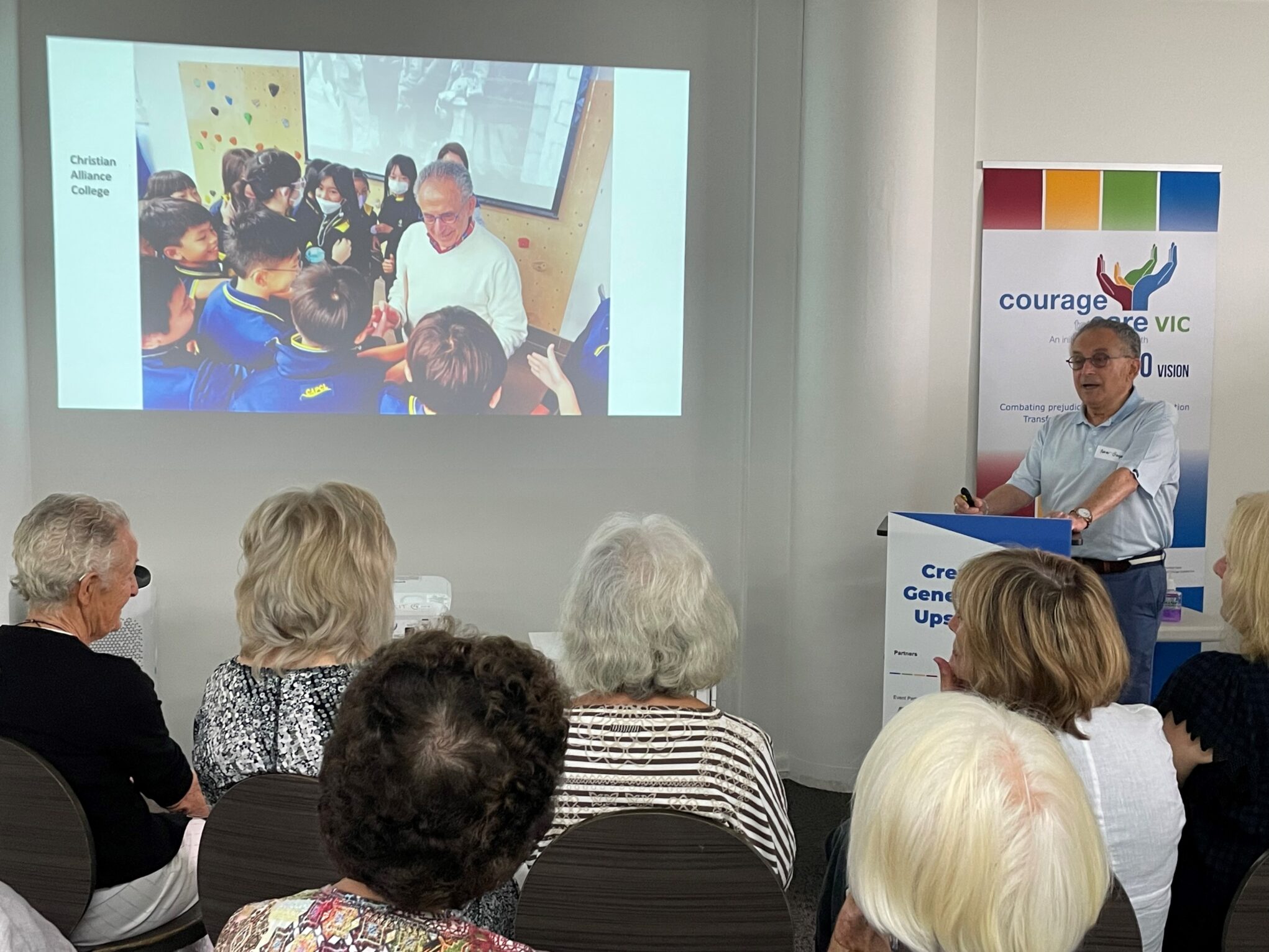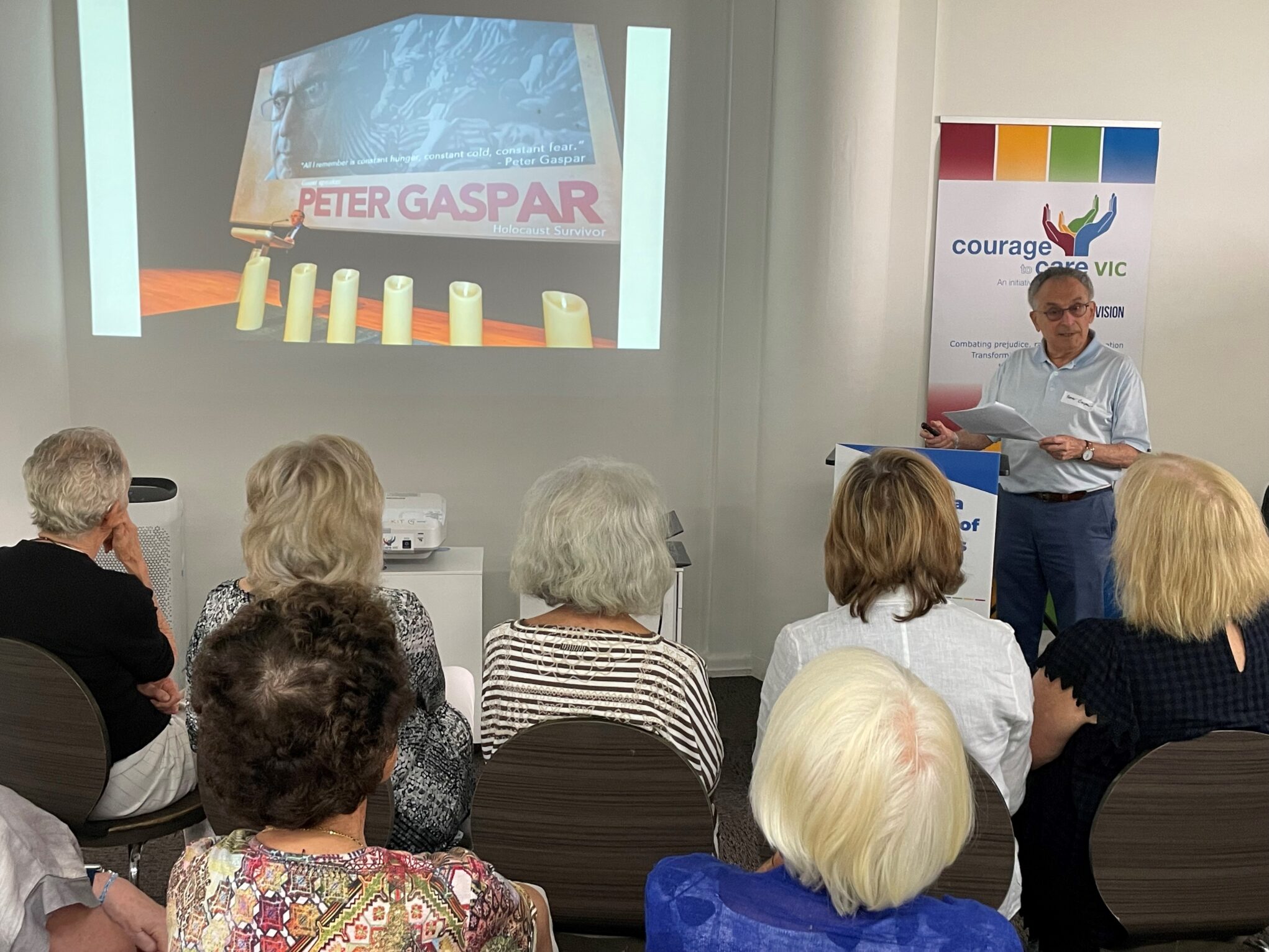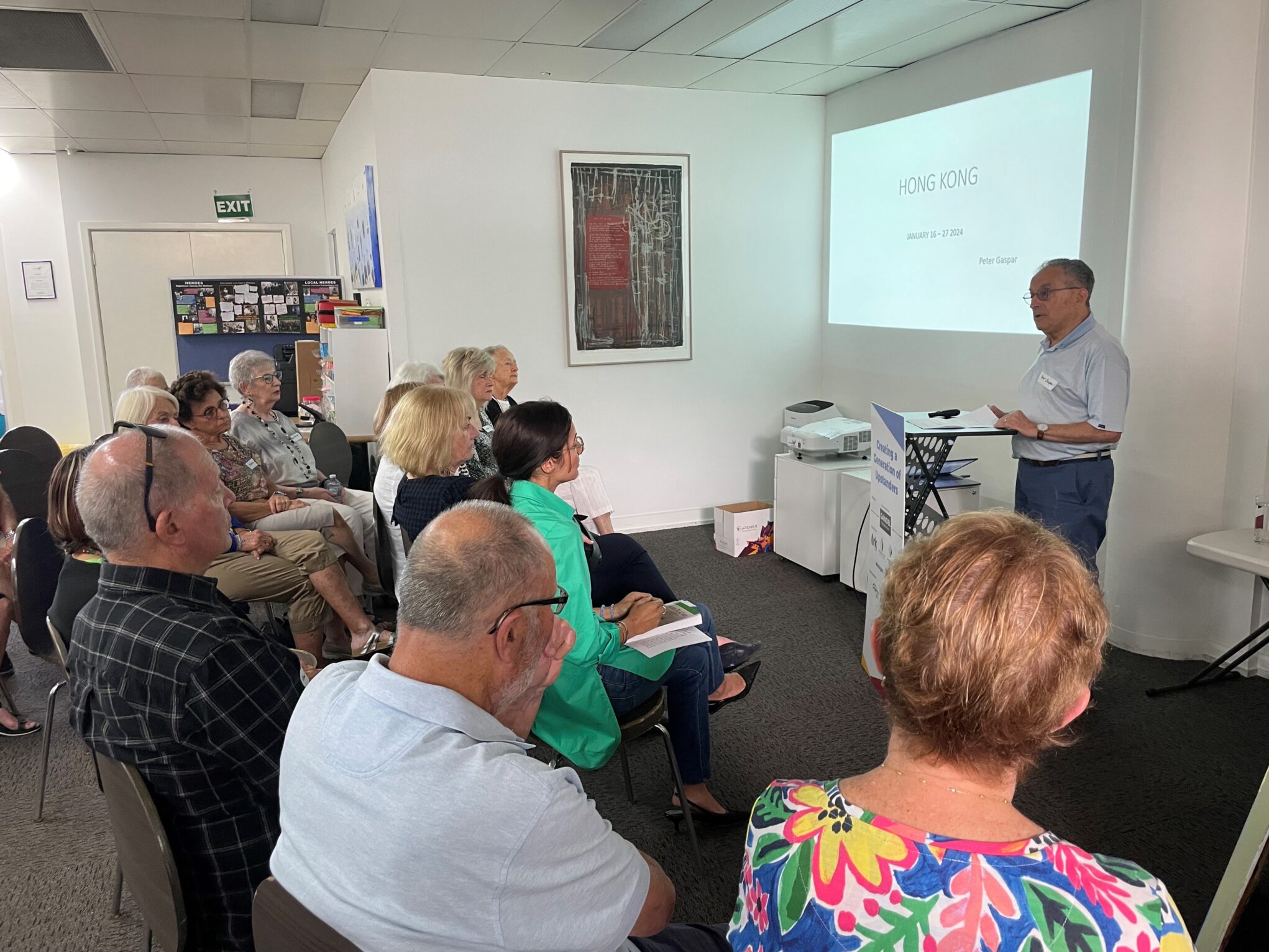 Our second speaker was our very own Peter Gaspar OAM. Peter has just returned from Hong Kong where he was the keynote speaker at United Nations Holocaust Remembrance Day on 25 January. Peter, accompanied by his wife Lesley also visited schools and community centres where Peter shared his story of survival with 100’s of students.