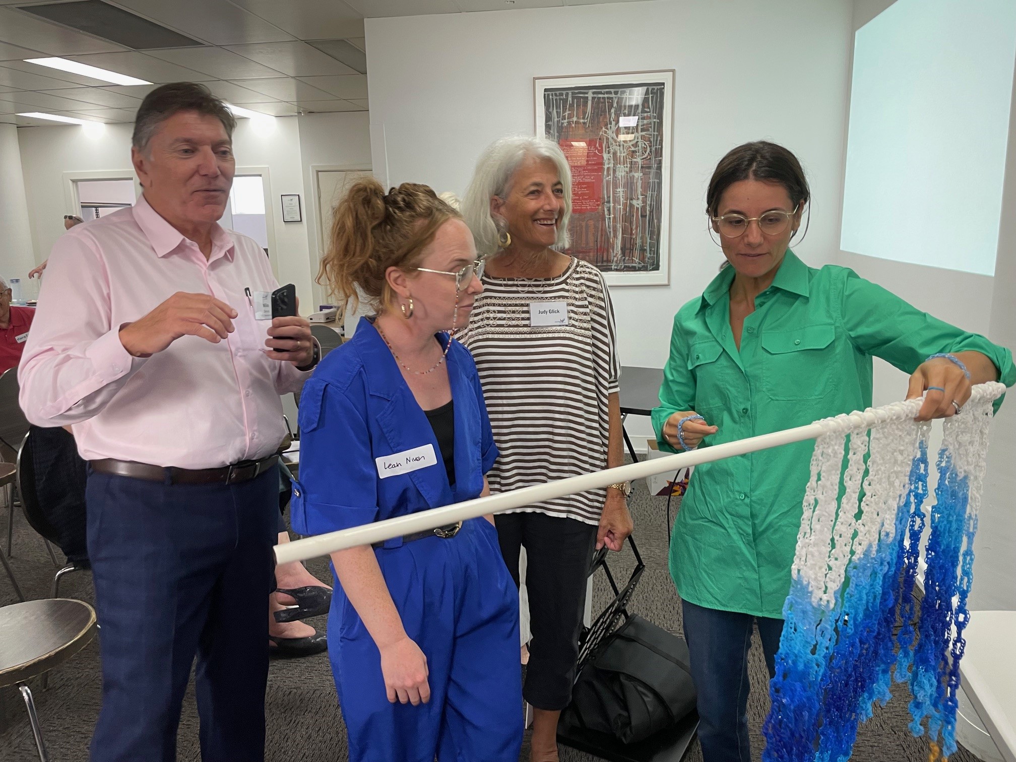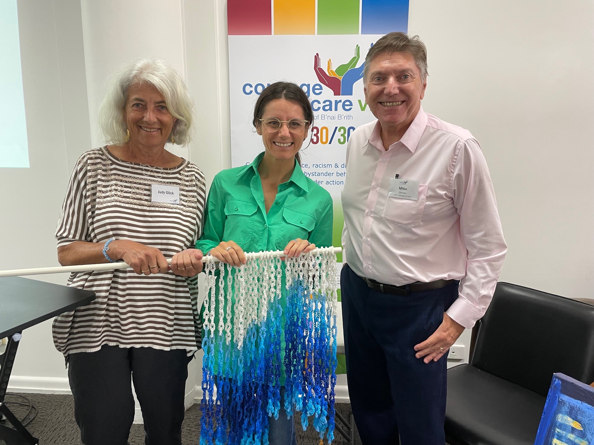 Building on the success, another initiative, “Loom for Light,” was launched. During a special 8-day event over Chanukah, The Victorian Jewish community joined forces, connecting over 11,000 blue and white loom bands into 110 one-meter looms. Utilizing all the looms, a magnificent mural for peace will be curated (see image below of the mural in progress).